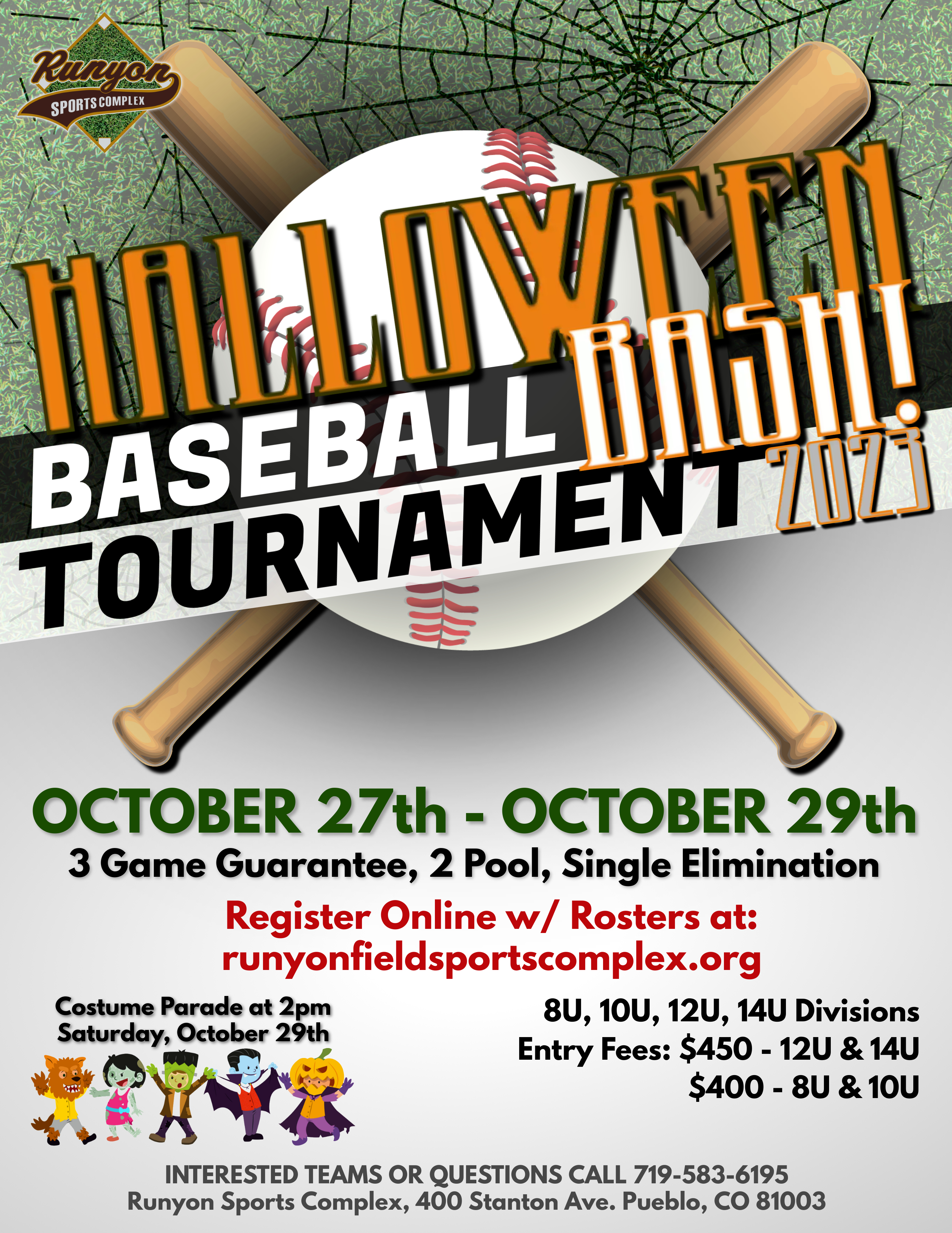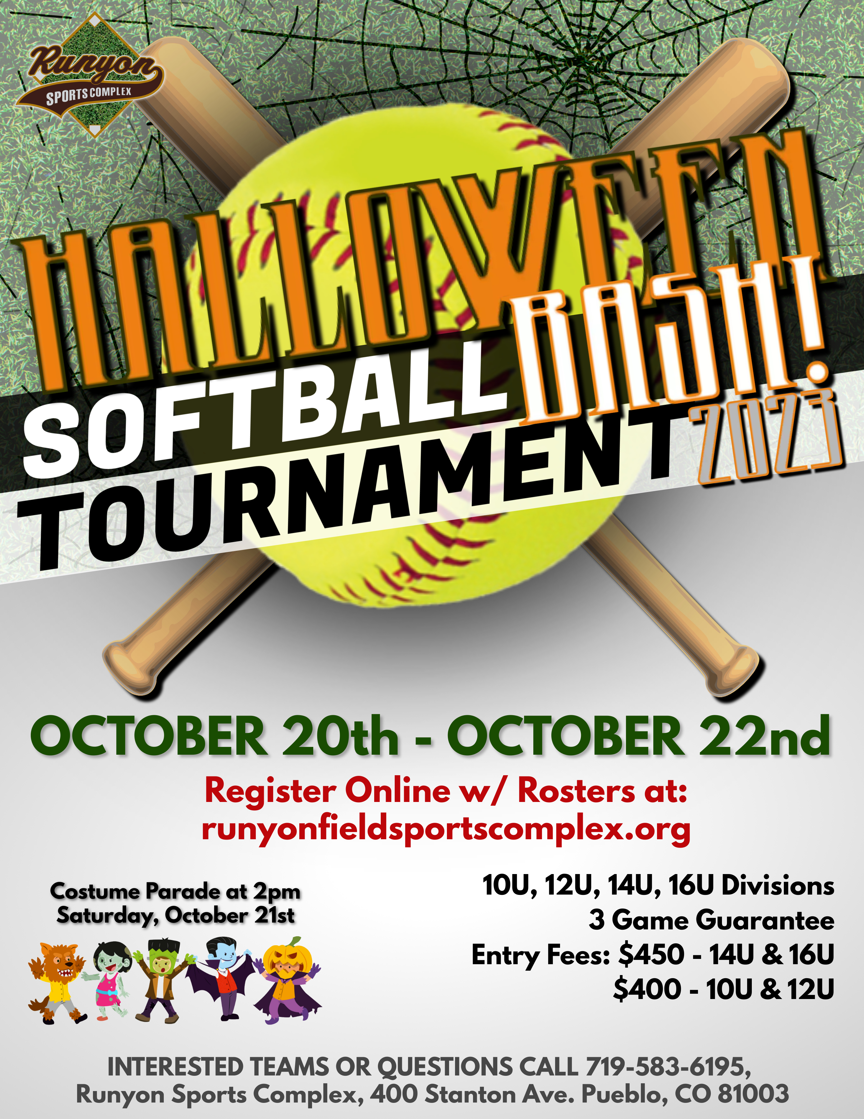 The Academy of Las Animas (AOLA) Online is a proud sponsor and supporter of Runyon Sports Complex and would like for you to join us for the Annual Halloween Softball & Baseball Tournaments!